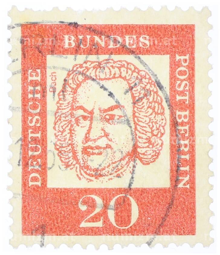 Купить Почтовая марка 20 пфеннигов 1961 года Западная Германия (ФРГ) «Выдающиеся немцы — Иоганн Себастьян Бах» (Западный Берлин) по привлекательной цене можно в нашем интернет-магазине — Вам достаточно оформить заказ на сайте. Все монеты, представленные в каталоге, находятся в наличии на нашем складе.