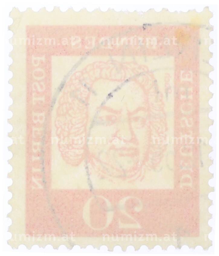 20.01.2025Интернет магазин «Нумизмат» предлагает приобрести Почтовая марка 20 пфеннигов 1961 года Западная Германия (ФРГ) «Выдающиеся немцы — Иоганн Себастьян Бах» (Западный Берлин).