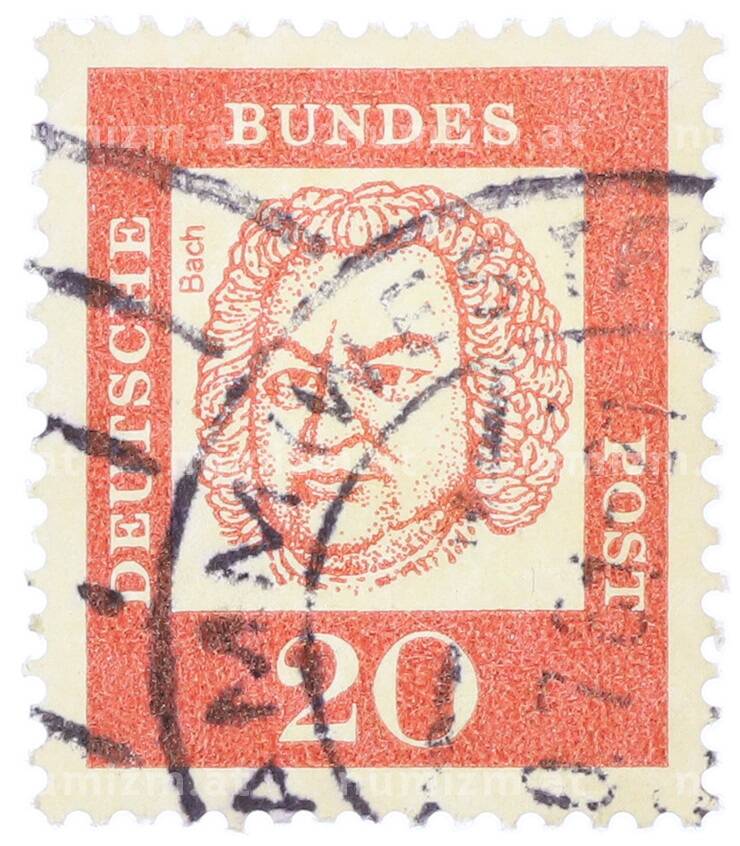 Почтовая марка 20 пфеннигов 1961 года Западная Германия (ФРГ) «Выдающиеся немцы — Иоганн Себастьян Бах» (Артикул: T11-35469): подробные характеристики, качественные фотографии в высоком разрешении, низкая цена.