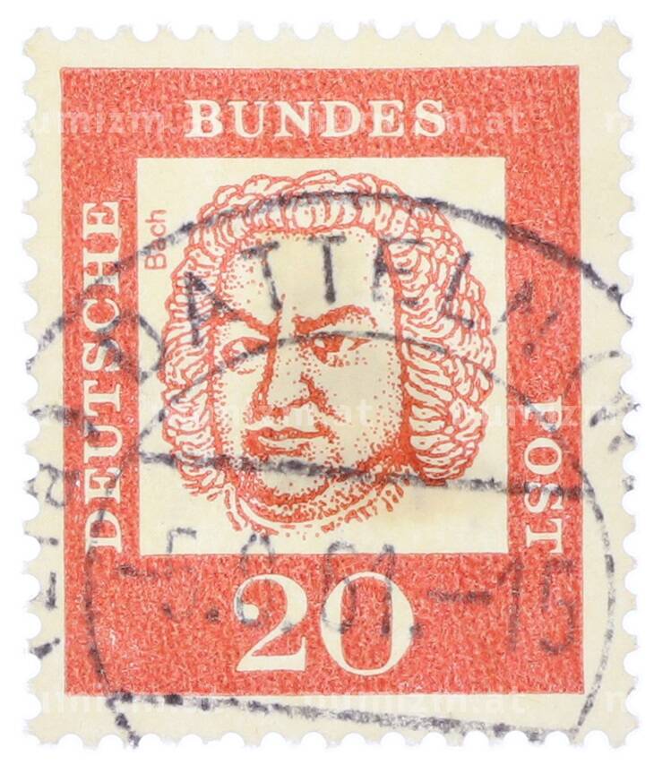 Почтовая марка 20 пфеннигов 1961 года Западная Германия (ФРГ) «Выдающиеся немцы — Иоганн Себастьян Бах» (Артикул: T11-35471): подробные характеристики, качественные фотографии в высоком разрешении, низкая цена.