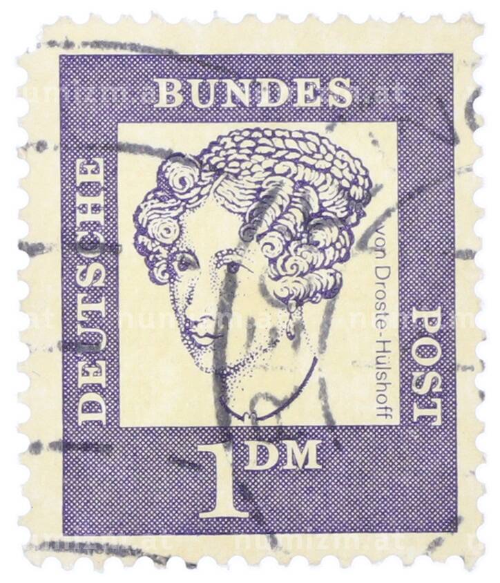 Почтовая марка 1 марка 1961 года Западная Германия (ФРГ) «Выдающиеся немцы — Аннетте фон Дросте-Хюльсхофф» (Артикул: T11-35474): подробные характеристики, качественные фотографии в высоком разрешении, низкая цена.