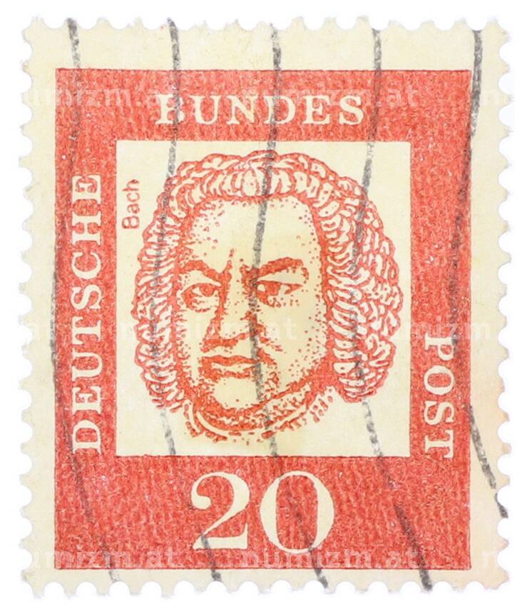 Почтовая марка 20 пфеннигов 1961 года Западная Германия (ФРГ) «Выдающиеся немцы — Иоганн Себастьян Бах» (Артикул: T11-35483): подробные характеристики, качественные фотографии в высоком разрешении, низкая цена.