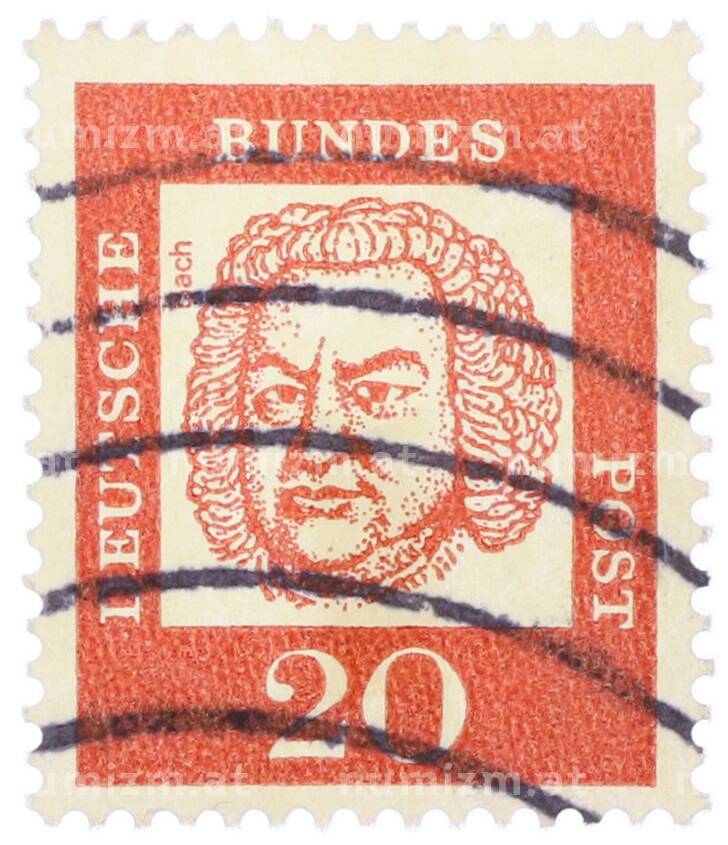 Почтовая марка 20 пфеннигов 1961 года Западная Германия (ФРГ) «Выдающиеся немцы — Иоганн Себастьян Бах» (Артикул: T11-35484): подробные характеристики, качественные фотографии в высоком разрешении, низкая цена.