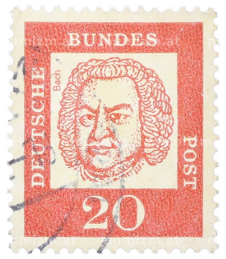 Почтовая марка 20 пфеннигов 1961 года Западная Германия (ФРГ) «Выдающиеся немцы — Иоганн Себастьян Бах» (Артикул: T11-35486): подробные характеристики, качественные фотографии в высоком разрешении, низкая цена.