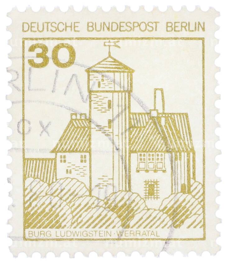 Почтовая марка 30 пфеннигов 1977 года Западная Германия (ФРГ) «Крепости и замки — Замок Людвигштейн» (Артикул: T11-35566): подробные характеристики, качественные фотографии в высоком разрешении, низкая цена.