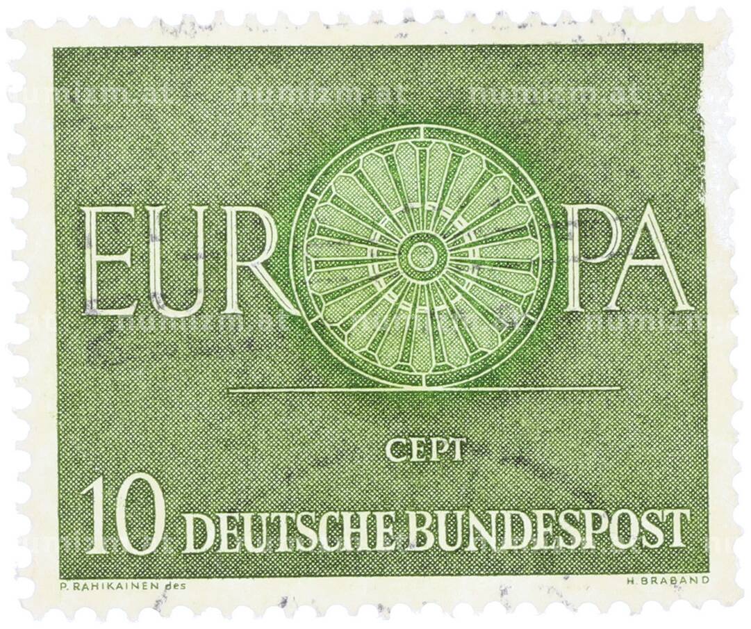 Почтовая марка 10 пфеннигов 1960 года Западная Германия (ФРГ) «Европейская конференция администраций почтовых служб и служб связи CEPT — Колесо» (Артикул: T11-35886): подробные характеристики, качественные фотографии в высоком разрешении, низкая цена.