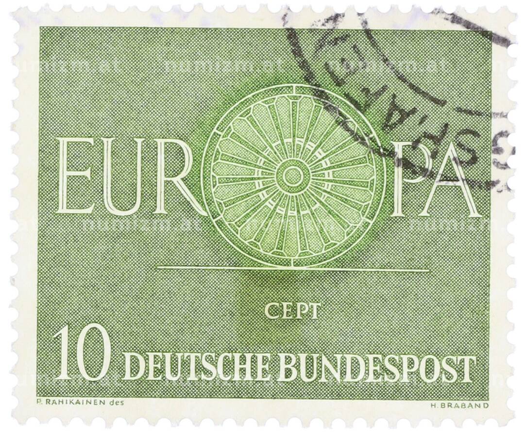 Почтовая марка 10 пфеннигов 1960 года Западная Германия (ФРГ) «Европейская конференция администраций почтовых служб и служб связи CEPT — Колесо» (Артикул: T11-35888): подробные характеристики, качественные фотографии в высоком разрешении, низкая цена.