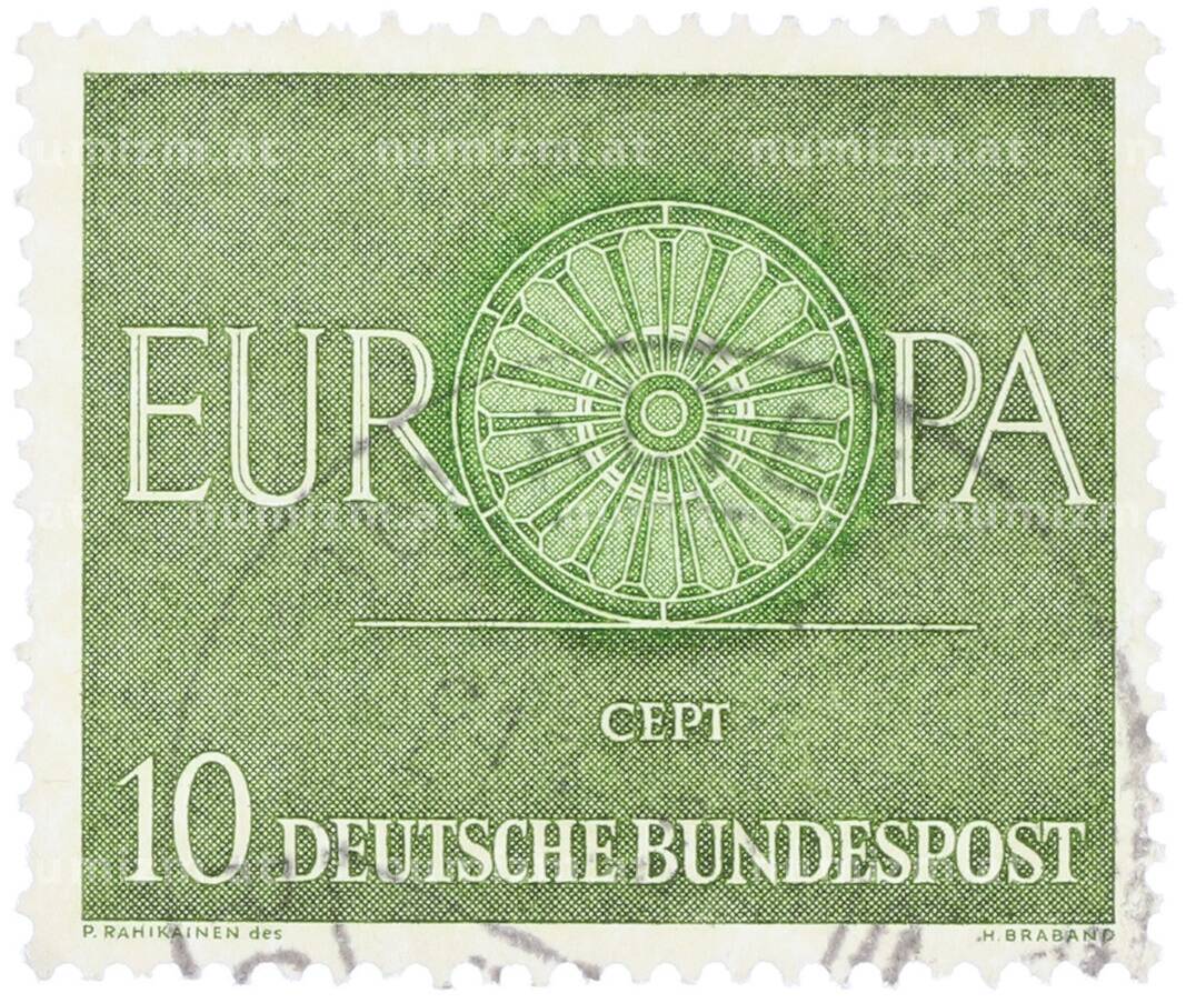 Почтовая марка 10 пфеннигов 1960 года Западная Германия (ФРГ) «Европейская конференция администраций почтовых служб и служб связи CEPT — Колесо» (Артикул: T11-35889): подробные характеристики, качественные фотографии в высоком разрешении, низкая цена.
