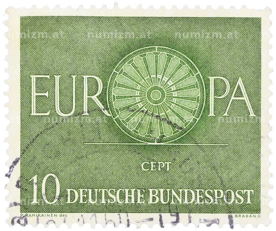Почтовая марка 10 пфеннигов 1960 года Западная Германия (ФРГ) «Европейская конференция администраций почтовых служб и служб связи CEPT — Колесо» (Артикул: T11-35891): подробные характеристики, качественные фотографии в высоком разрешении, низкая цена.