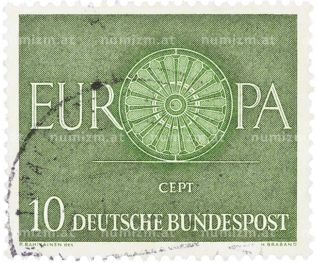 Почтовая марка 10 пфеннигов 1960 года Западная Германия (ФРГ) «Европейская конференция администраций почтовых служб и служб связи CEPT — Колесо» (Артикул: T11-35892): подробные характеристики, качественные фотографии в высоком разрешении, низкая цена.