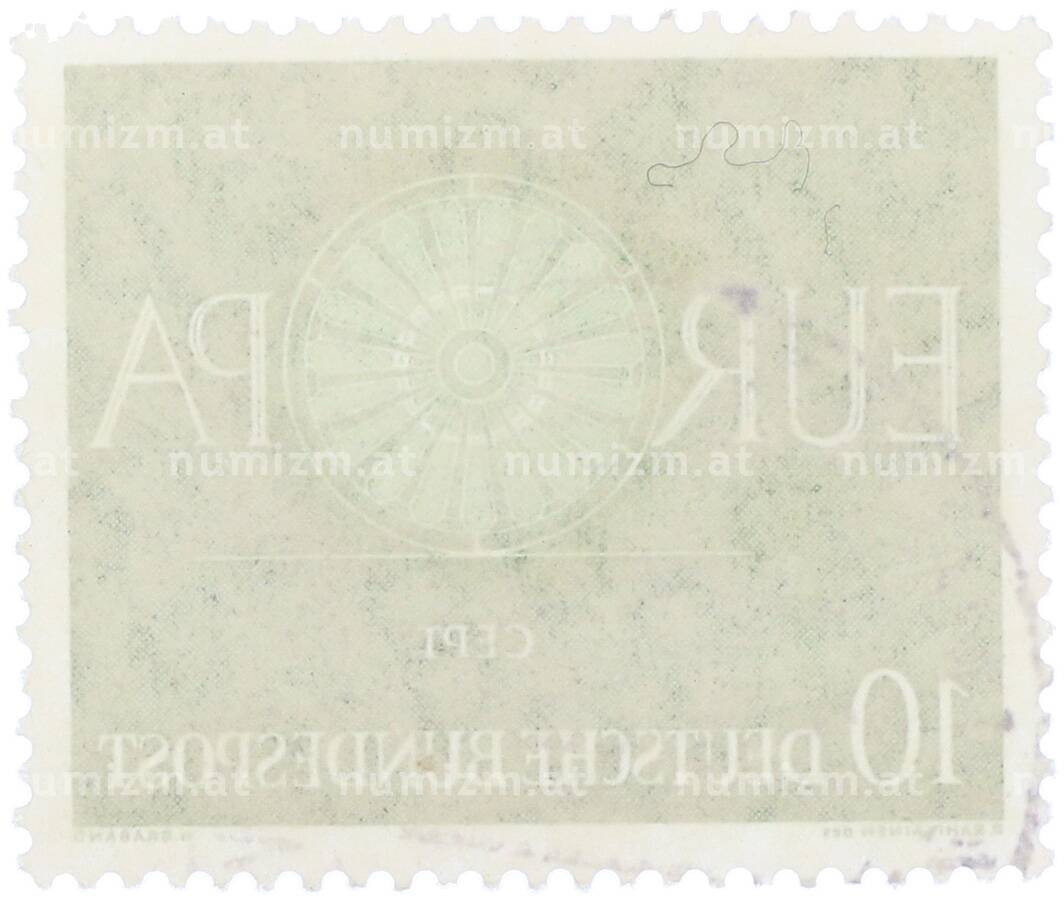 Интернет магазин «Нумизмат» предлагает приобрести Почтовая марка 10 пфеннигов 1960 года Западная Германия (ФРГ) «Европейская конференция администраций почтовых служб и служб связи CEPT — Колесо».