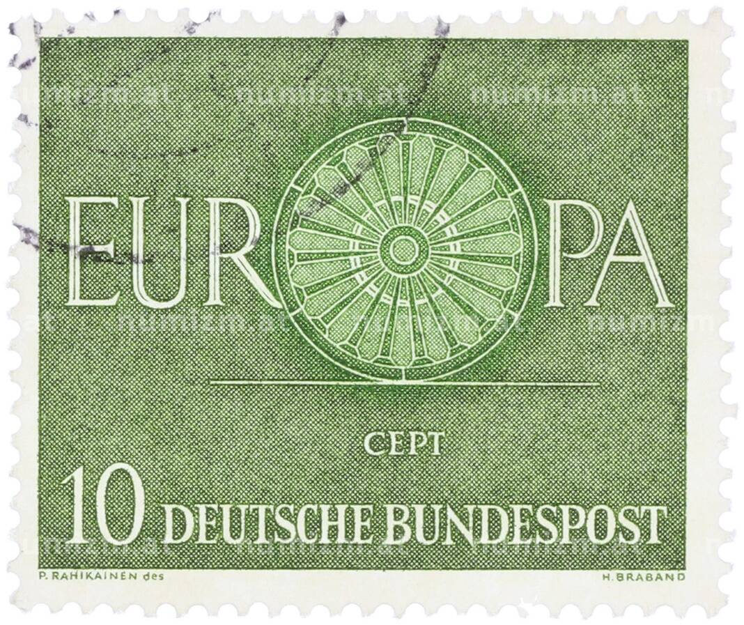 Почтовая марка 10 пфеннигов 1960 года Западная Германия (ФРГ) «Европейская конференция администраций почтовых служб и служб связи CEPT — Колесо» (Артикул: T11-35893): подробные характеристики, качественные фотографии в высоком разрешении, низкая цена.