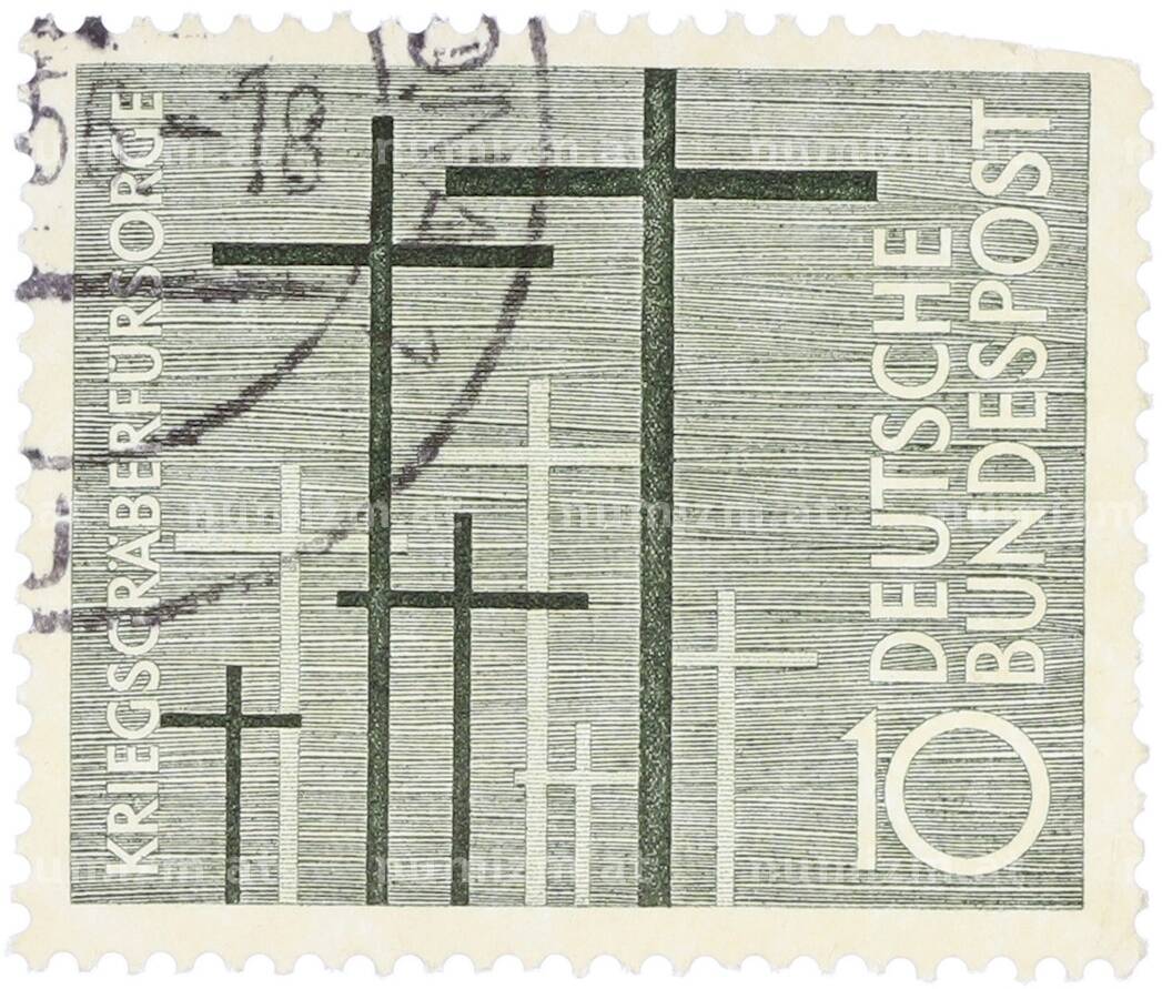 Почтовая марка 10 пфеннигов 1956 года Западная Германия (ФРГ) «Уход за военными могилами» (Артикул: T11-35928): подробные характеристики, качественные фотографии в высоком разрешении, низкая цена.