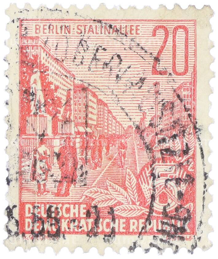 Почтовая марка 20 пфеннигов 1955 года Восточная Германия (ГДР) «Пятилетний план — Проспект Сталина» (Артикул: T11-35998): подробные характеристики, качественные фотографии в высоком разрешении, низкая цена.