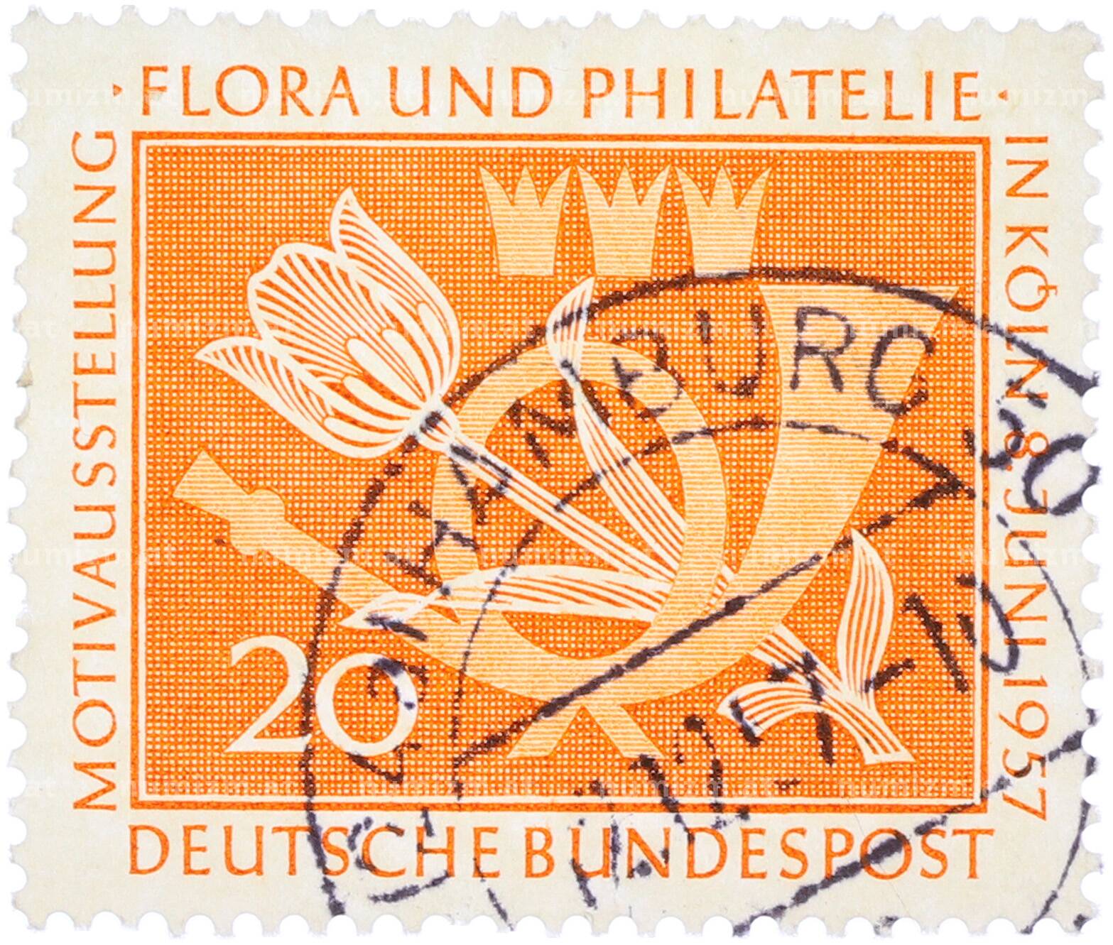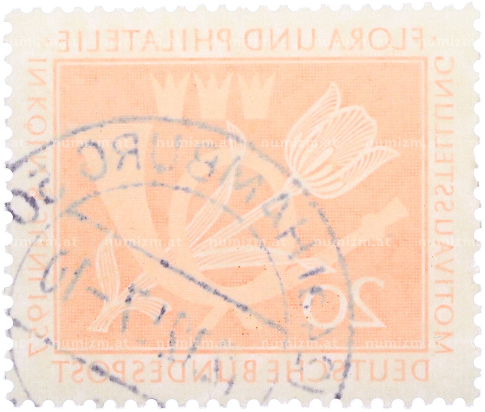 Интернет магазин «Нумизмат» предлагает приобрести Почтовая марка 20 пфеннигов 1957 года Западная Германия (ФРГ) «Выставка почтовых марок в Кельне — Флора и филателия».