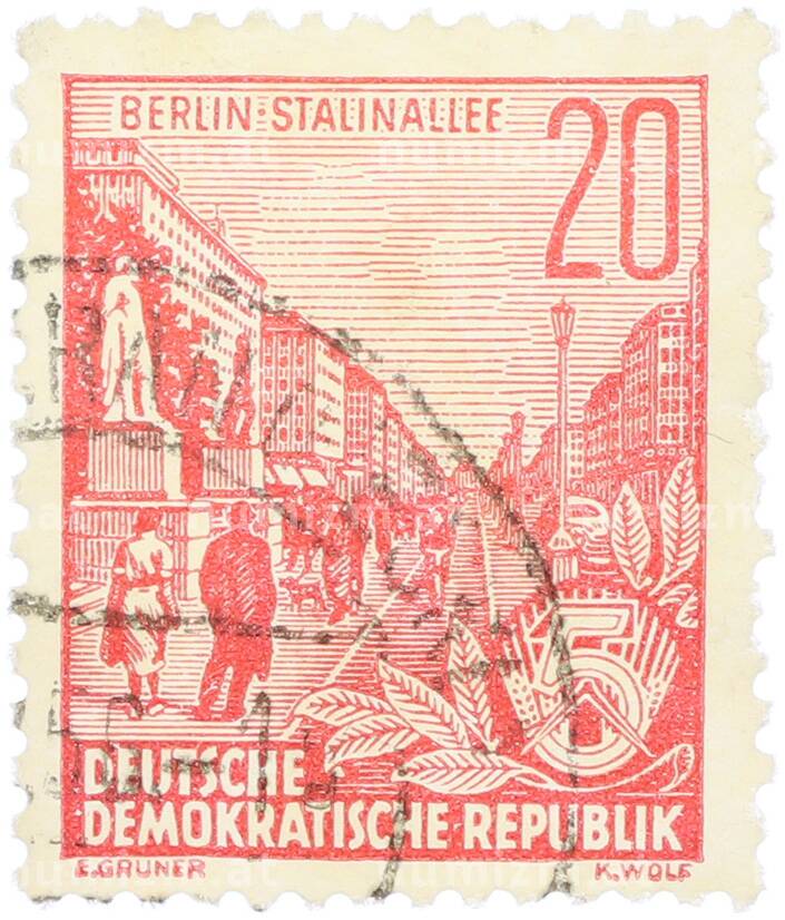 Купить Почтовая марка 20 пфеннигов 1955 года Восточная Германия (ГДР) «Пятилетний план — Проспект Сталина» по привлекательной цене можно в нашем интернет-магазине — Вам достаточно оформить заказ на сайте. Все монеты, представленные в каталоге, находятся в наличии на нашем складе.