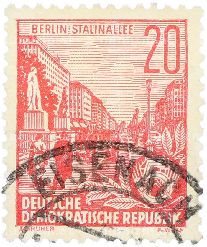 Почтовая марка 20 пфеннигов 1955 года Восточная Германия (ГДР) «Пятилетний план — Проспект Сталина» (Артикул: T11-36214): подробные характеристики, качественные фотографии в высоком разрешении, низкая цена.
