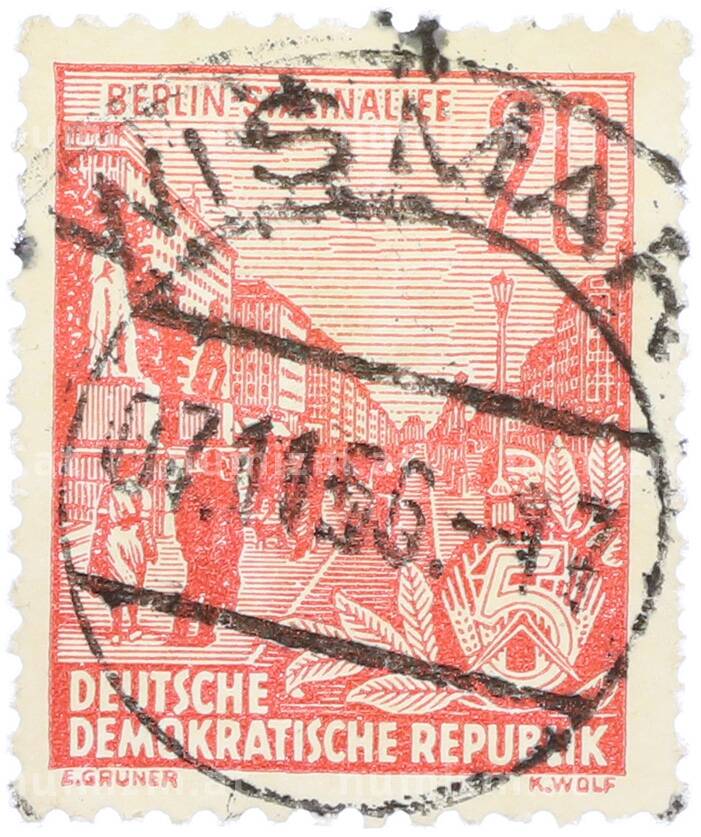 Почтовая марка 20 пфеннигов 1955 года Восточная Германия (ГДР) «Пятилетний план — Проспект Сталина» (Артикул: T11-36217): подробные характеристики, качественные фотографии в высоком разрешении, низкая цена.