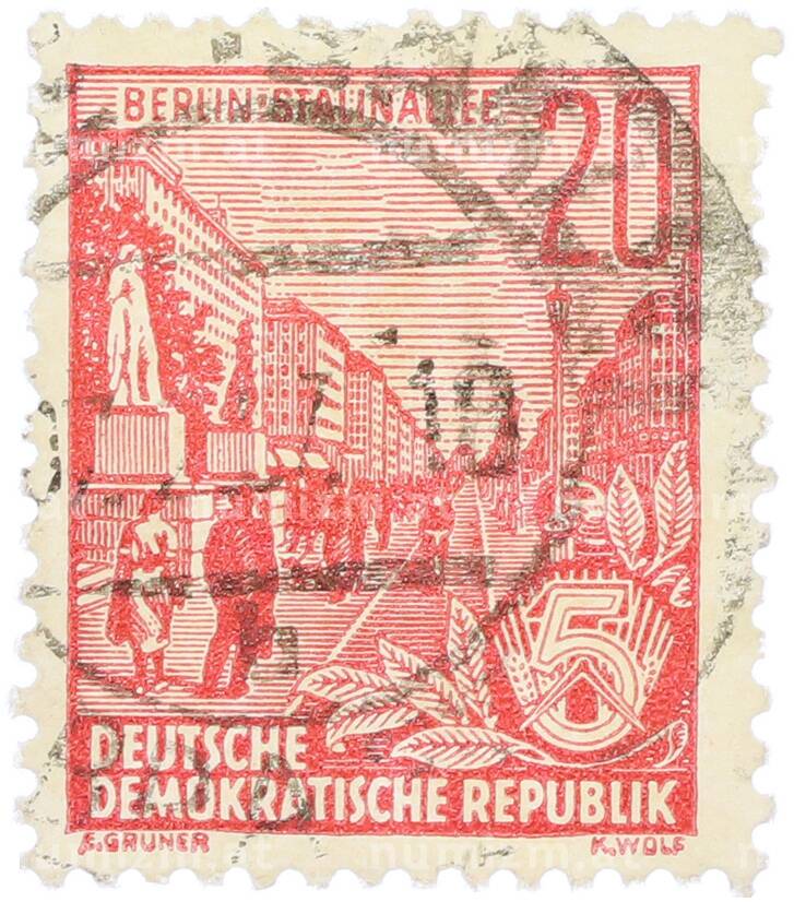 Почтовая марка 20 пфеннигов 1955 года Восточная Германия (ГДР) «Пятилетний план — Проспект Сталина» (Артикул: T11-36227): подробные характеристики, качественные фотографии в высоком разрешении, низкая цена.
