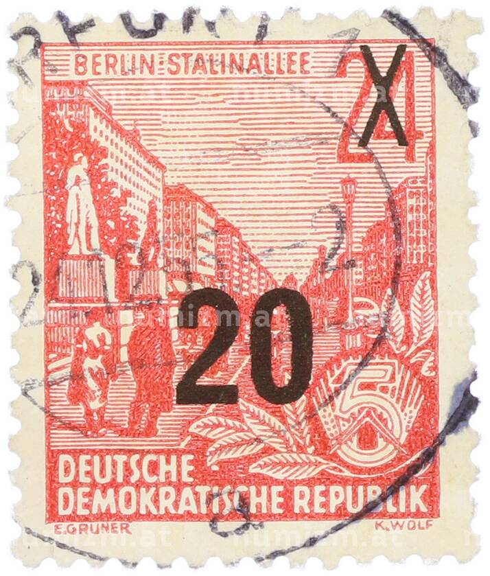 Купить Почтовая марка 20 пфеннигов 1957 года Восточная Германия (ГДР) «Пятилетний план — Проспект Сталина» (Надпечатка на 24 пфеннигах 1953 года) по привлекательной цене можно в нашем интернет-магазине — Вам достаточно оформить заказ на сайте. Все монеты, представленные в каталоге, находятся в наличии на нашем складе.