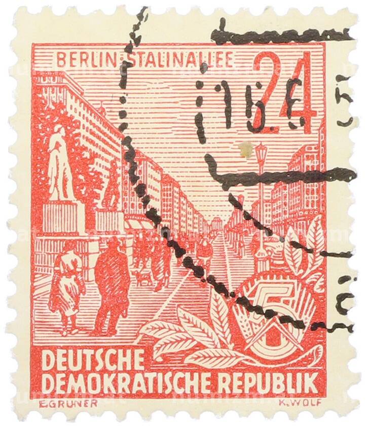 Почтовая марка 24 пфеннига 1953 года Восточная Германия (ГДР) «Пятилетний план — Проспект Сталина» (Артикул: T11-36234): подробные характеристики, качественные фотографии в высоком разрешении, низкая цена.