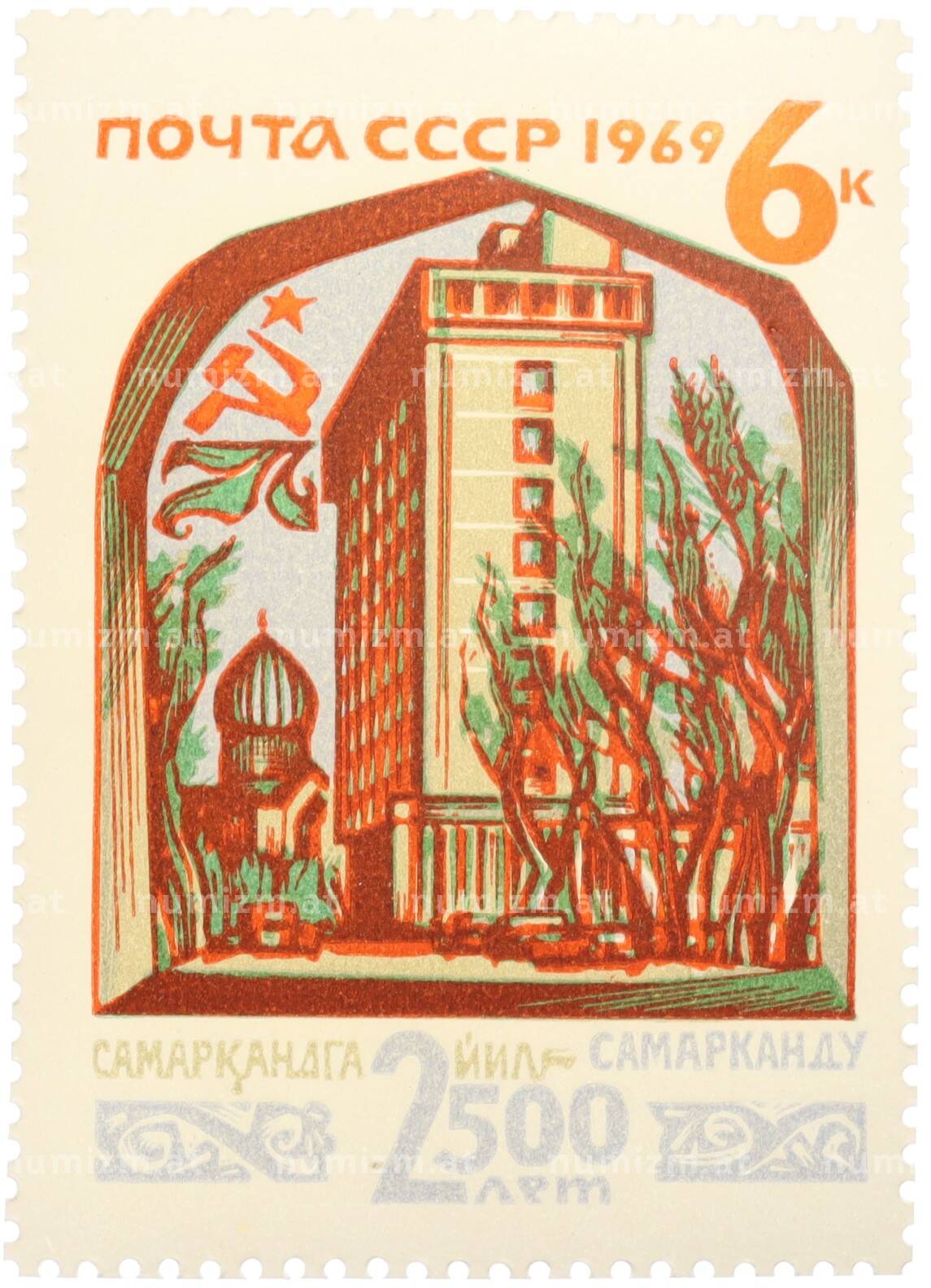 Купить Почтовая марка 6 копеек 1969 года «2500 лет Самарканду» по привлекательной цене можно в нашем интернет-магазине — Вам достаточно оформить заказ на сайте. Все монеты, представленные в каталоге, находятся в наличии на нашем складе.