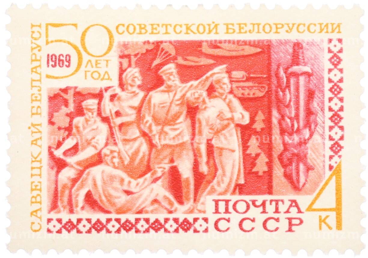 Купить Почтовая марка 4 копейки 1969 года «50 лет Советской Белоруссии» по привлекательной цене можно в нашем интернет-магазине — Вам достаточно оформить заказ на сайте. Все монеты, представленные в каталоге, находятся в наличии на нашем складе.