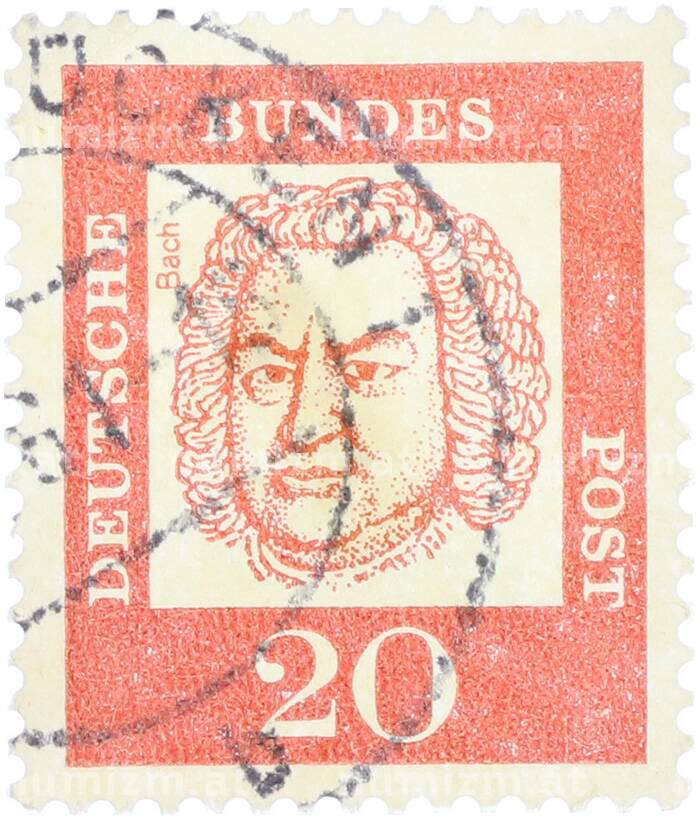 Почтовая марка 20 пфеннигов 1961 года Западная Германия (ФРГ) «Выдающиеся немцы — Иоганн Себастьян Бах» (Артикул: T11-36281): подробные характеристики, качественные фотографии в высоком разрешении, низкая цена.