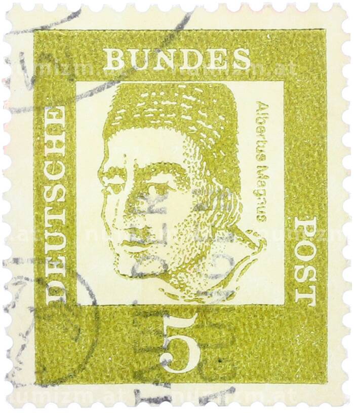 Купить Почтовая марка 5 пфеннигов 1961 года Западная Германия (ФРГ) «Выдающиеся немцы — Альберт Великий» по привлекательной цене можно в нашем интернет-магазине — Вам достаточно оформить заказ на сайте. Все монеты, представленные в каталоге, находятся в наличии на нашем складе.
