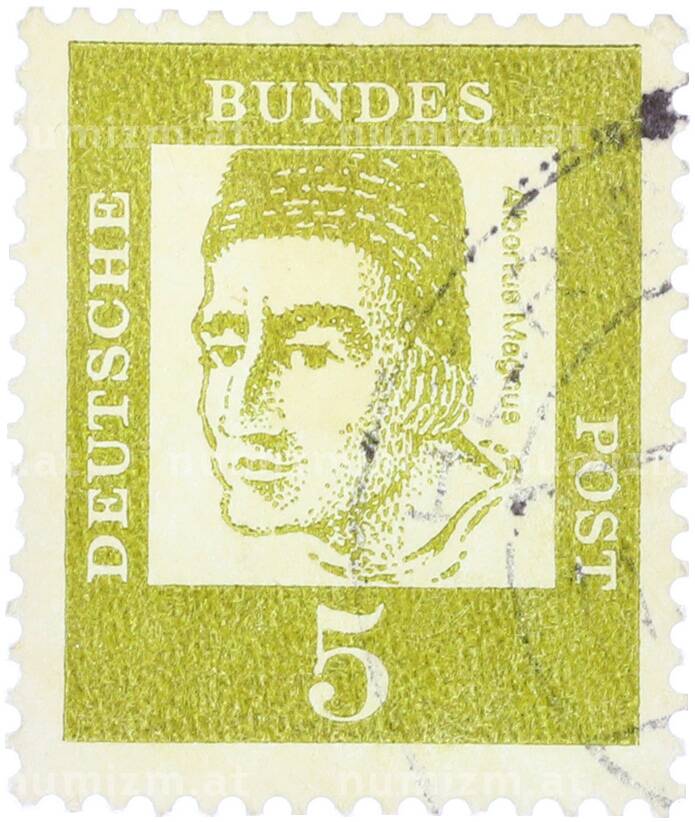 Интернет магазин «Нумизмат» предлагает приобрести Почтовая марка 5 пфеннигов 1961 года Западная Германия (ФРГ) «Выдающиеся немцы — Альберт Великий».