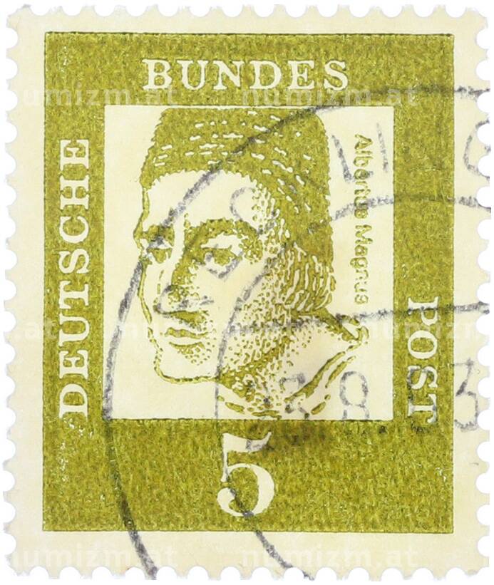 Интернет магазин «Нумизмат» предлагает приобрести Почтовая марка 5 пфеннигов 1961 года Западная Германия (ФРГ) «Выдающиеся немцы — Альберт Великий».