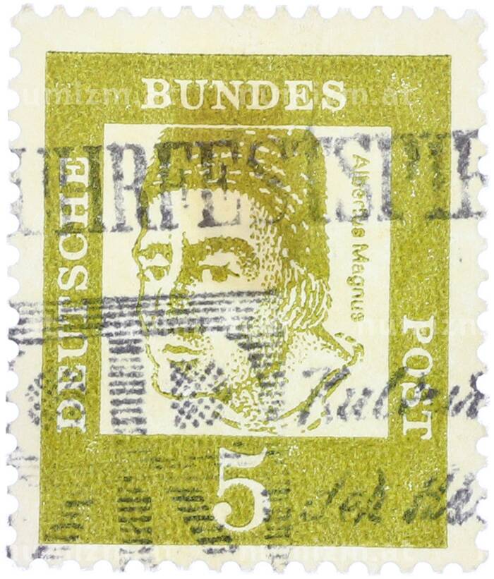 Почтовая марка 5 пфеннигов 1961 года Западная Германия (ФРГ) «Выдающиеся немцы — Альберт Великий» [Артикул: T11-36310]