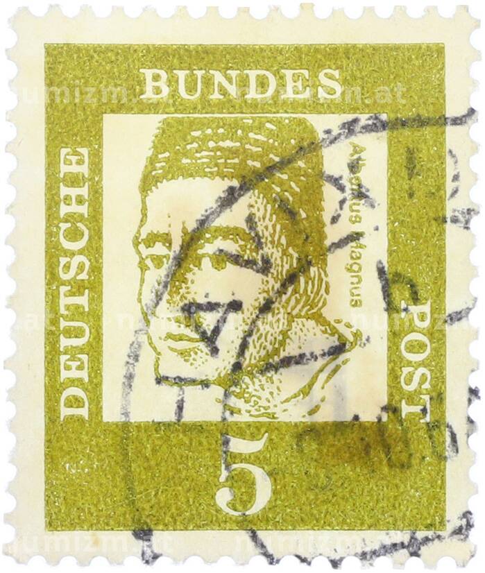 Почтовая марка 5 пфеннигов 1961 года Западная Германия (ФРГ) «Выдающиеся немцы — Альберт Великий» (Артикул: T11-36314): подробные характеристики, качественные фотографии в высоком разрешении, низкая цена.