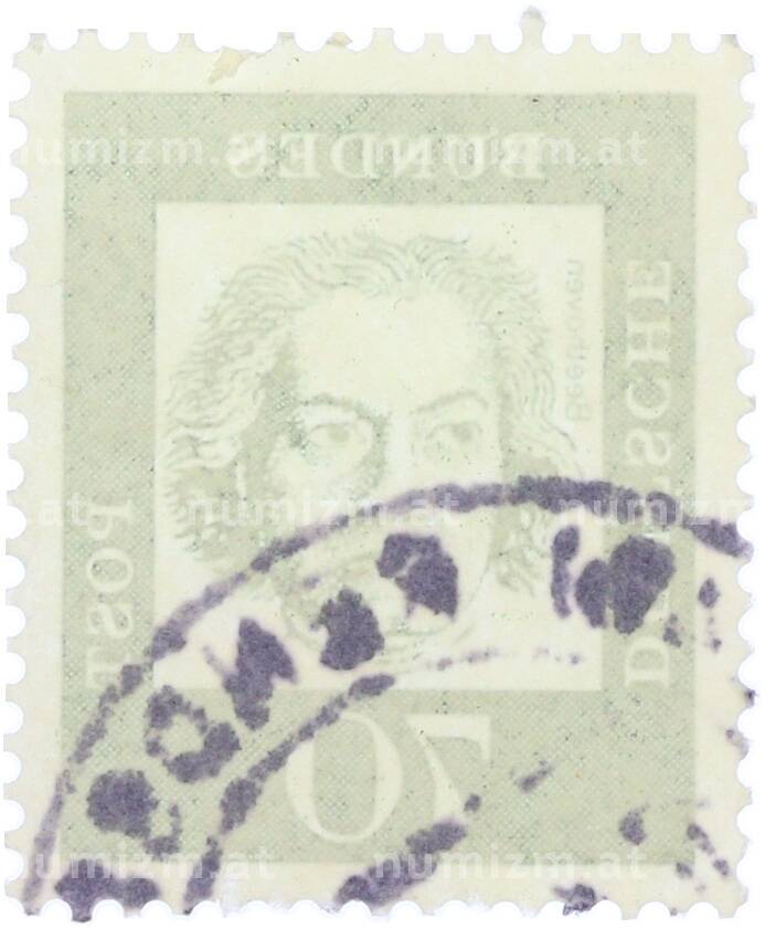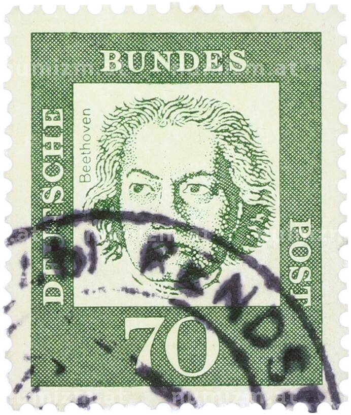Купить Почтовая марка 70 пфеннигов 1961 года Западная Германия (ФРГ) «Выдающиеся немцы — Людвиг ван Бетховен» по привлекательной цене можно в нашем интернет-магазине — Вам достаточно оформить заказ на сайте. Все монеты, представленные в каталоге, находятся в наличии на нашем складе.