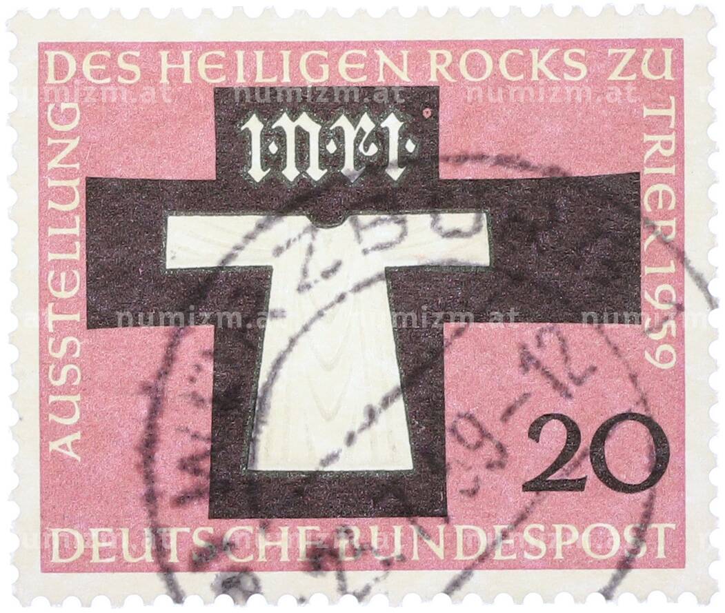 Почтовая марка 20 пфеннигов 1959 года Западная Германия (ФРГ) «Выставление на обозрение Святого одеяния Трира» (Артикул: T11-36332): подробные характеристики, качественные фотографии в высоком разрешении, низкая цена.