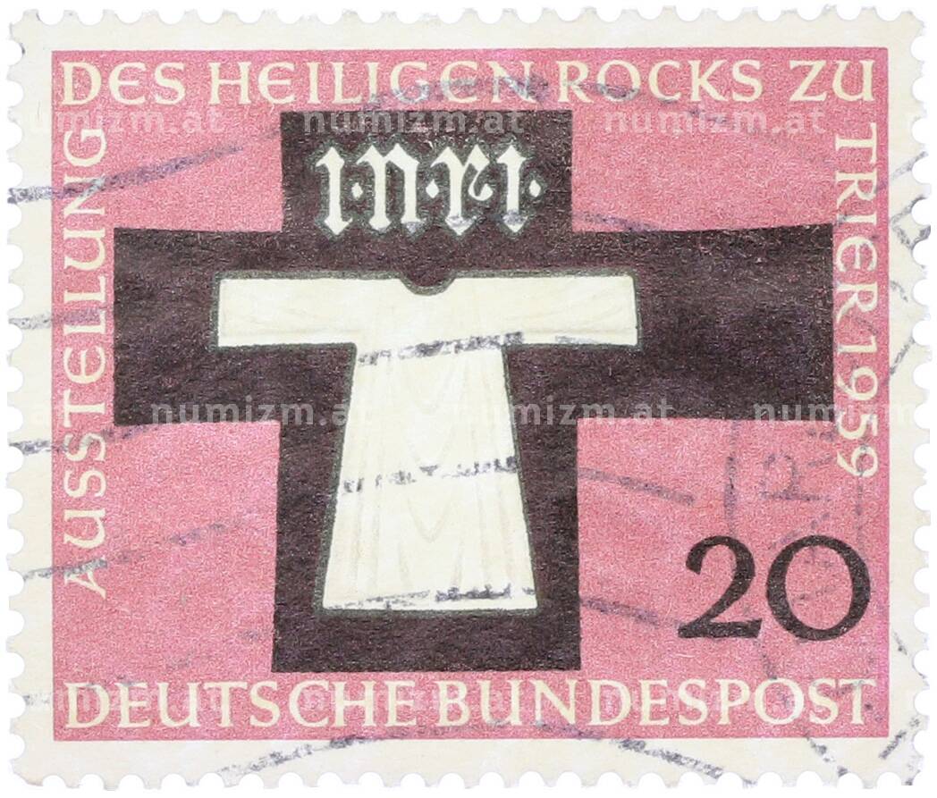 Почтовая марка 20 пфеннигов 1959 года Западная Германия (ФРГ) «Выставление на обозрение Святого одеяния Трира» (Артикул: T11-36334): подробные характеристики, качественные фотографии в высоком разрешении, низкая цена.