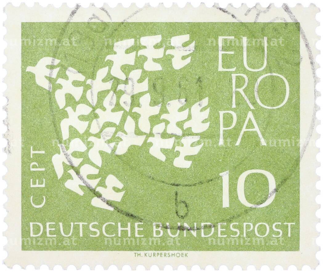 Почтовая марка 10 пфеннигов 1961 года Западная Германия (ФРГ) «Европейская конференция администраций почтовых служб и служб связи CEPT — Голуби» (Артикул: T11-36342): подробные характеристики, качественные фотографии в высоком разрешении, низкая цена.
