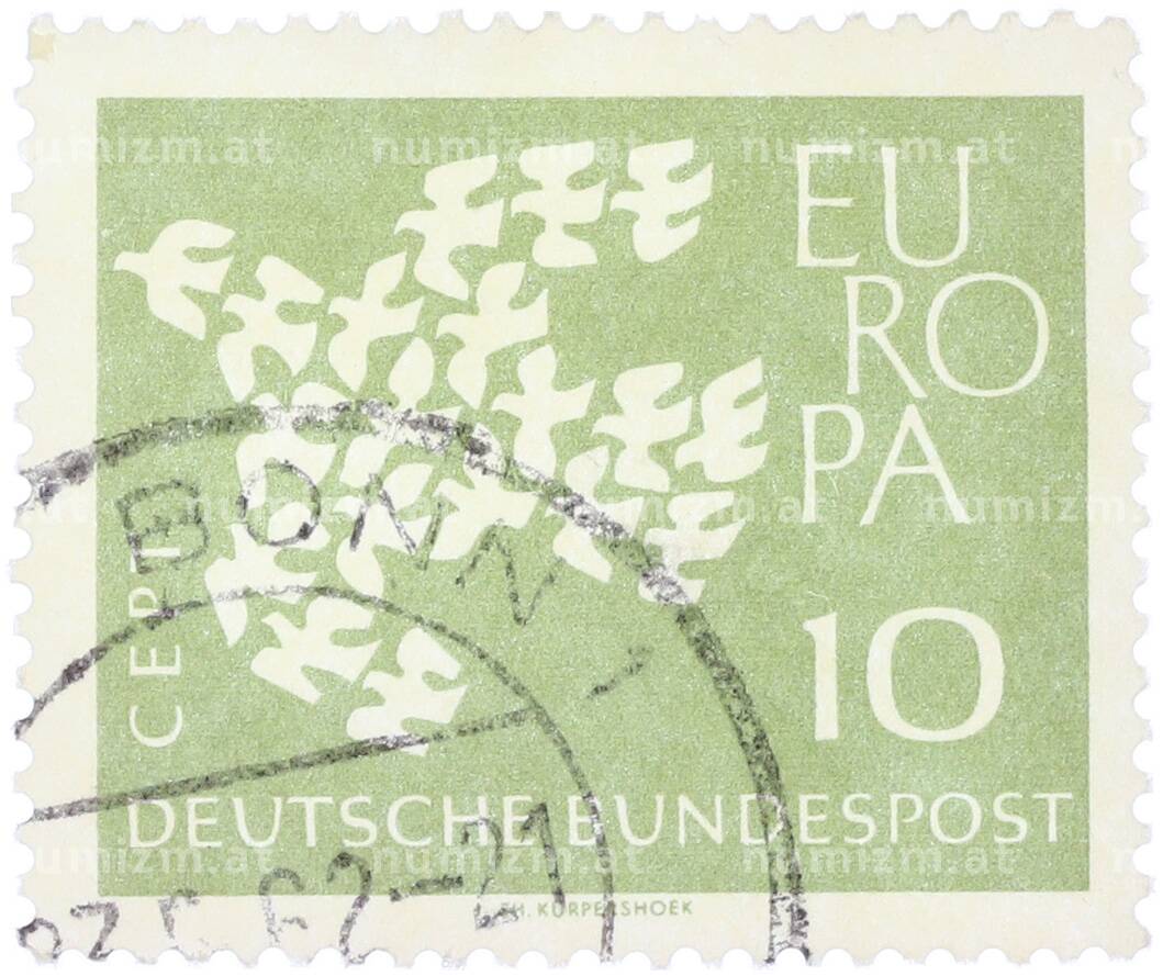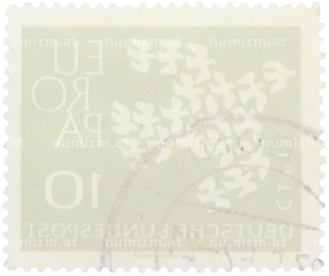 Интернет магазин «Нумизмат» предлагает приобрести Почтовая марка 10 пфеннигов 1961 года Западная Германия (ФРГ) «Европейская конференция администраций почтовых служб и служб связи CEPT — Голуби».