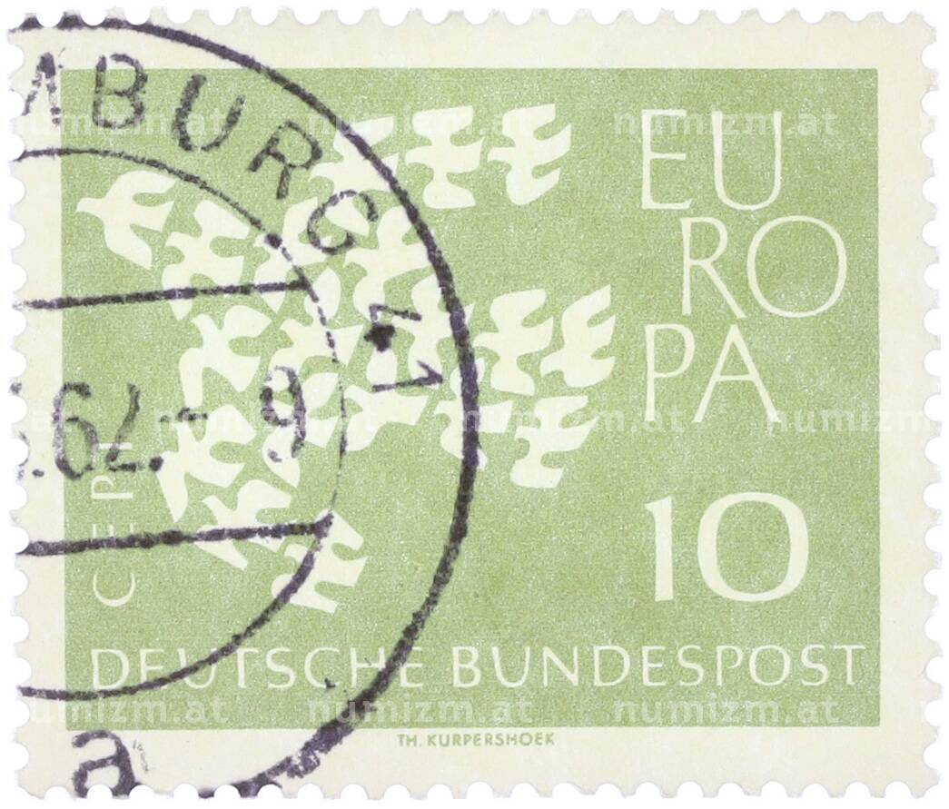 Интернет магазин «Нумизмат» предлагает приобрести Почтовая марка 10 пфеннигов 1961 года Западная Германия (ФРГ) «Европейская конференция администраций почтовых служб и служб связи CEPT — Голуби».