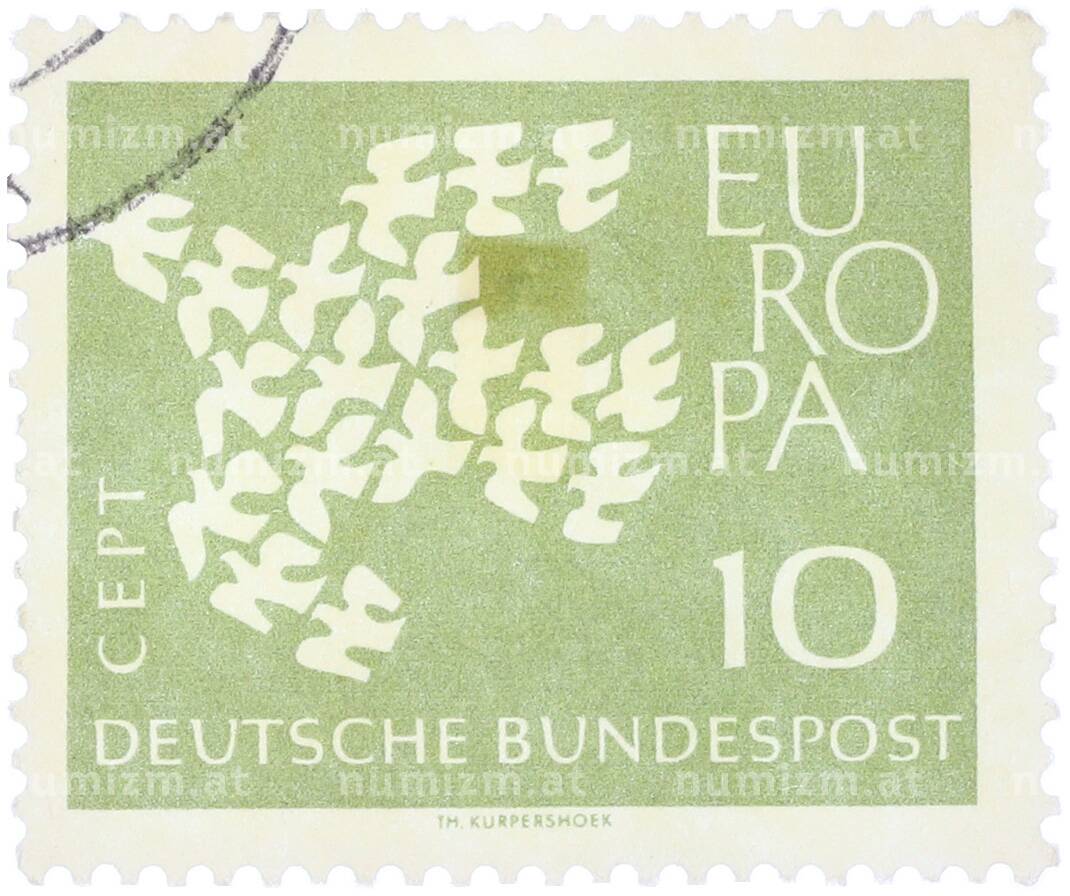 Почтовая марка 10 пфеннигов 1961 года Западная Германия (ФРГ) «Европейская конференция администраций почтовых служб и служб связи CEPT — Голуби» (Артикул: T11-36374): подробные характеристики, качественные фотографии в высоком разрешении, низкая цена.