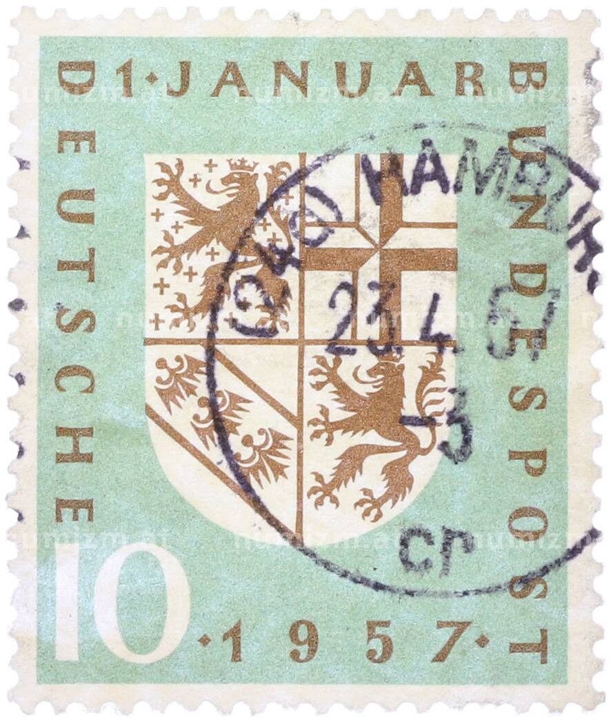 Почтовая марка 10 пфеннигов 1957 года Западная Германия (ФРГ) «Реинтеграция Саарской области в состав ФРГ» [Артикул: T11-36404]