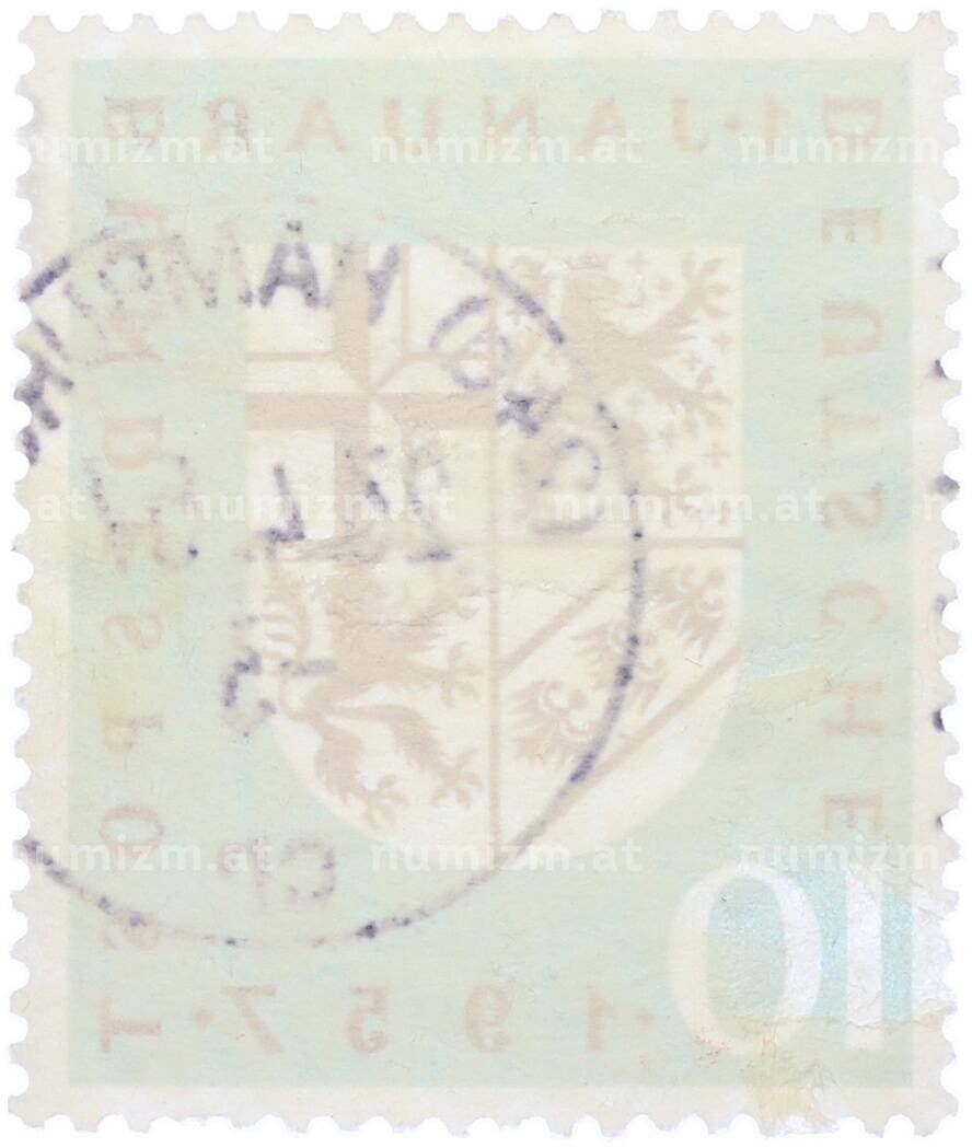 Интернет магазин «Нумизмат» предлагает приобрести Почтовая марка 10 пфеннигов 1957 года Западная Германия (ФРГ) «Реинтеграция Саарской области в состав ФРГ».