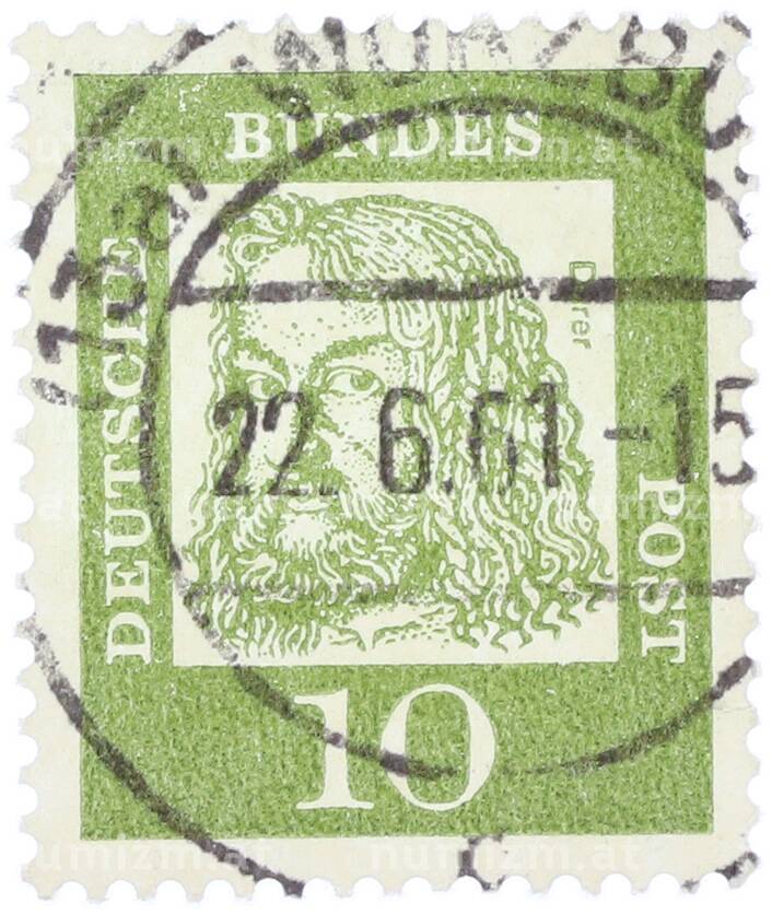 Почтовая марка 10 пфеннигов 1961 года Западная Германия (ФРГ) «Выдающиеся немцы — Альбрехт Дюрер» (Артикул: T11-36504): подробные характеристики, качественные фотографии в высоком разрешении, низкая цена.