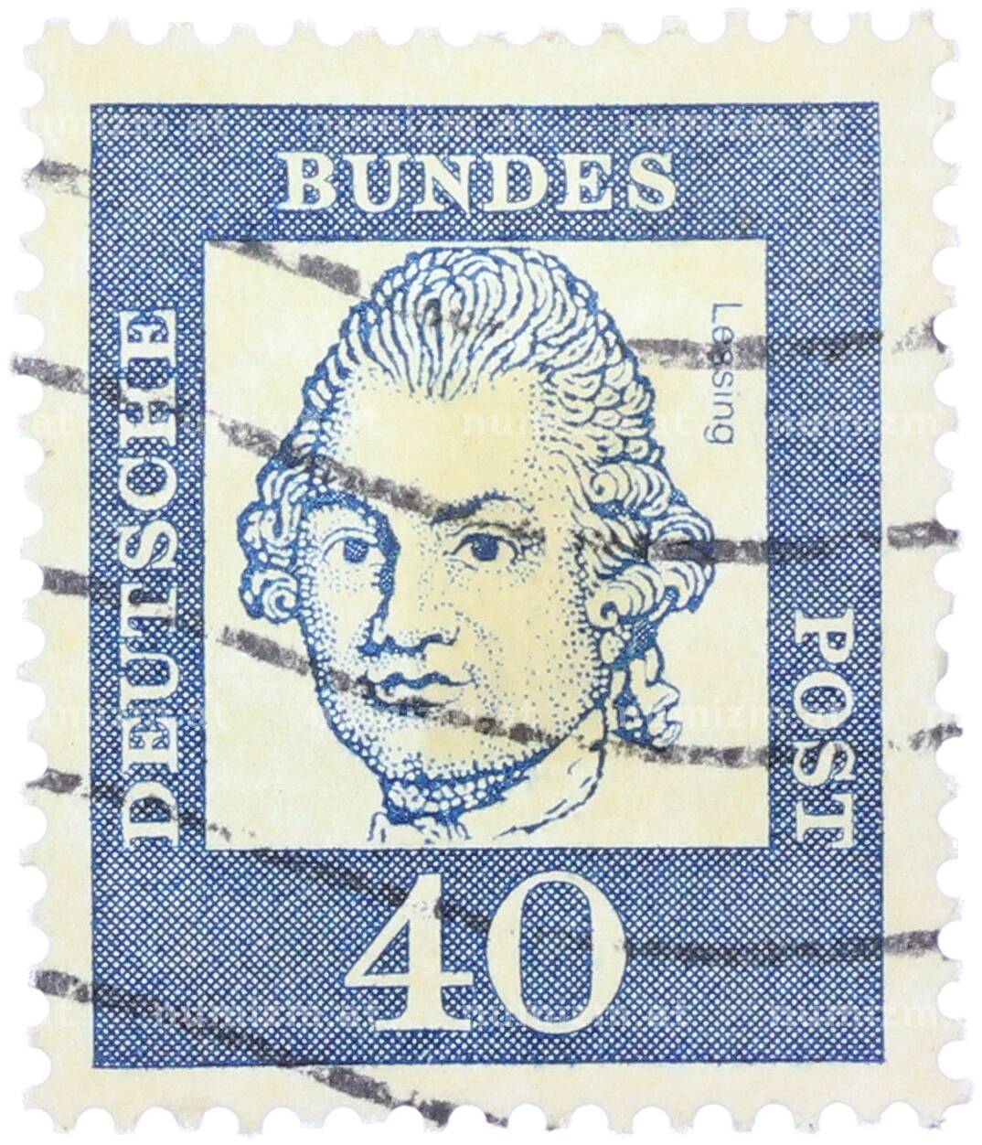Почтовая марка 40 пфеннигов 1961 года Западная Германия (ФРГ) «Выдающиеся немцы — Готхольд Эфраим Лессинг» (Артикул: T11-36607): подробные характеристики, качественные фотографии в высоком разрешении, низкая цена.