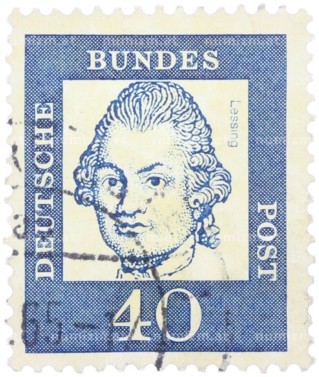 Почтовая марка 40 пфеннигов 1961 года Западная Германия (ФРГ) «Выдающиеся немцы — Готхольд Эфраим Лессинг» (Артикул: T11-36609): подробные характеристики, качественные фотографии в высоком разрешении, низкая цена.