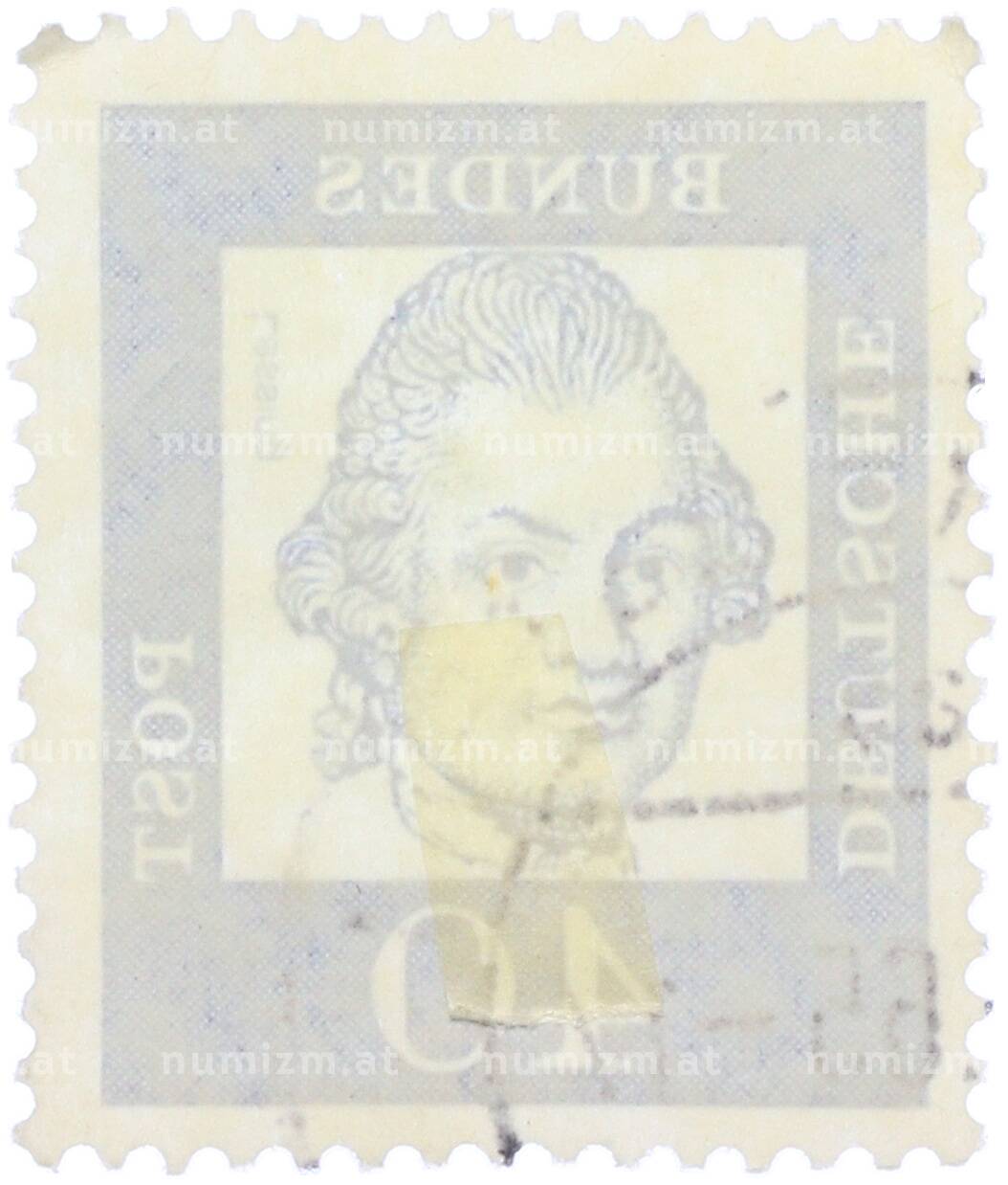 Интернет магазин «Нумизмат» предлагает приобрести Почтовая марка 40 пфеннигов 1961 года Западная Германия (ФРГ) «Выдающиеся немцы — Готхольд Эфраим Лессинг».