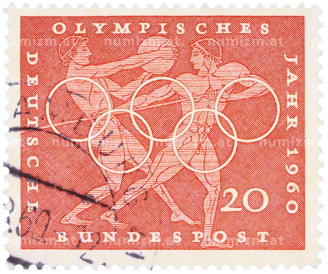 Почтовая марка 20 пфеннигов 1960 года Западная Германия (ФРГ) «Олимпийские игры — Легкая атлетика» (Артикул: T11-36668): подробные характеристики, качественные фотографии в высоком разрешении, низкая цена.