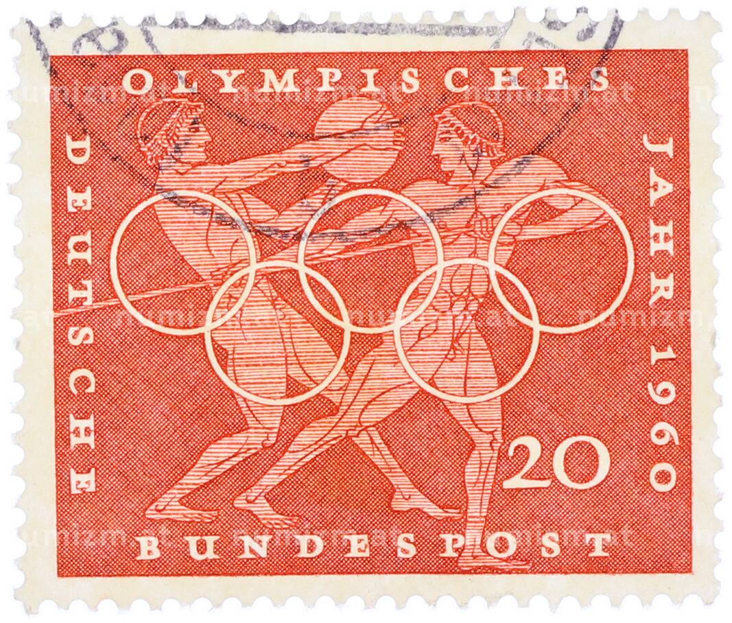 Почтовая марка 20 пфеннигов 1960 года Западная Германия (ФРГ) «Олимпийские игры — Легкая атлетика» (Артикул: T11-36669): подробные характеристики, качественные фотографии в высоком разрешении, низкая цена.