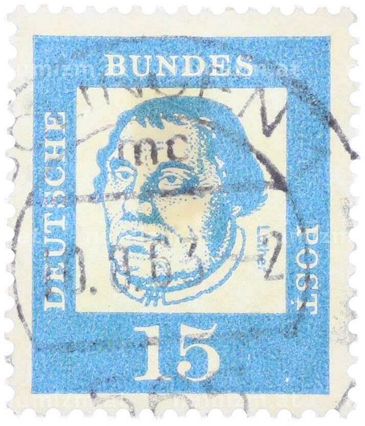 Почтовая марка 15 пфеннигов 1961 года Западная Германия (ФРГ) «Выдающиеся немцы — Мартин Лютер» (Артикул: T11-36766): подробные характеристики, качественные фотографии в высоком разрешении, низкая цена.