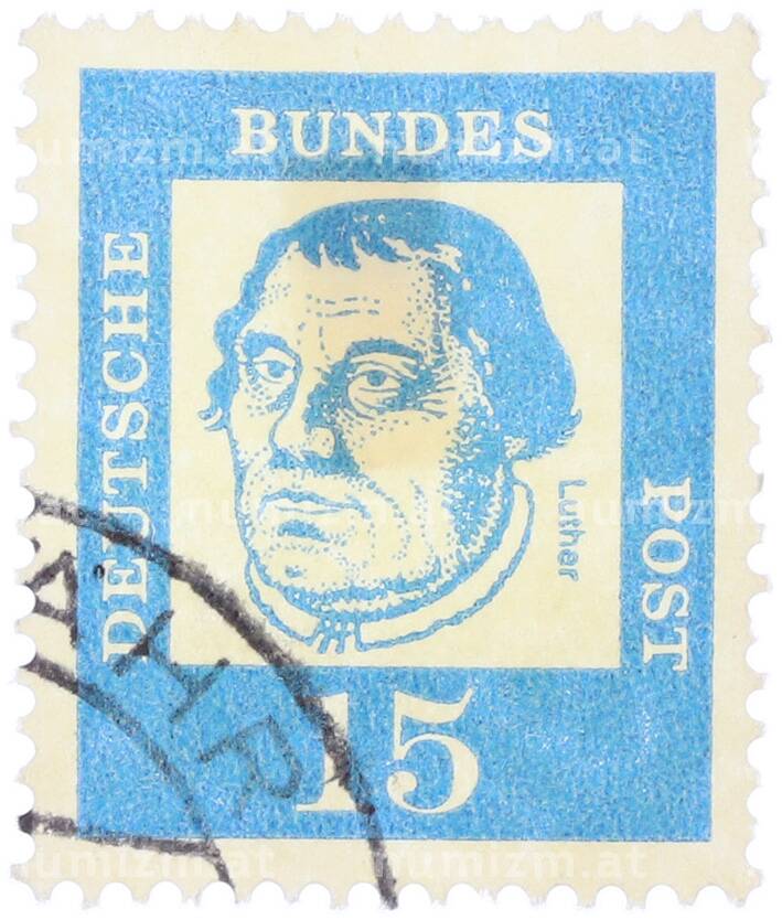 Почтовая марка 15 пфеннигов 1961 года Западная Германия (ФРГ) «Выдающиеся немцы — Мартин Лютер» (Артикул: T11-36768): подробные характеристики, качественные фотографии в высоком разрешении, низкая цена.